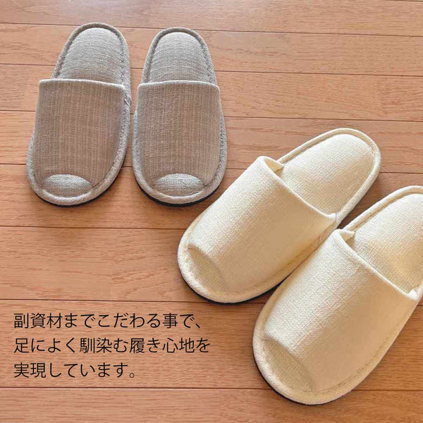 リネンコットンのさらりとした風合いを纏った上質なスリッパです。
